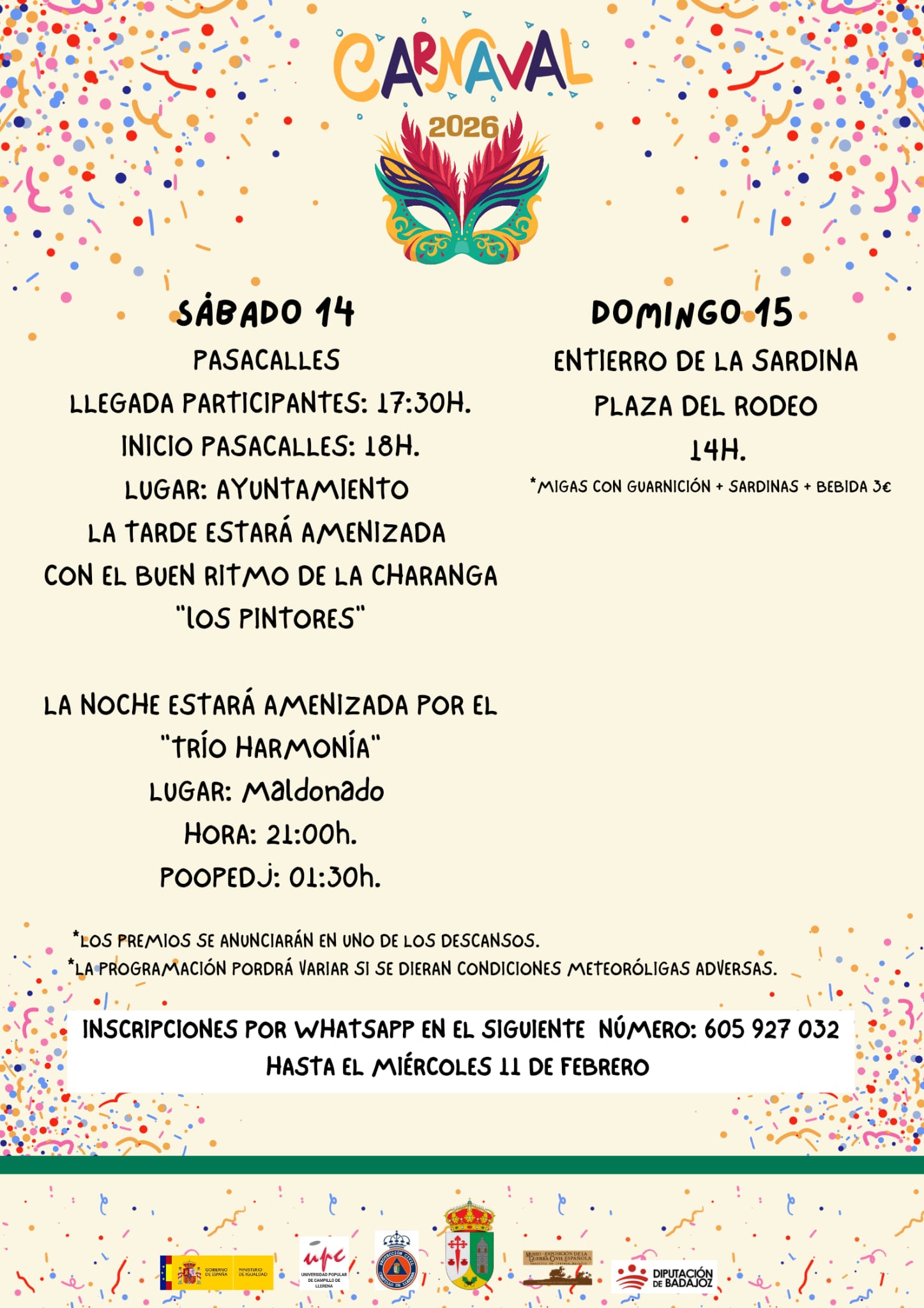 Se informa que en el tablón de anuncios de este Ayuntamiento se encuentran expuestas las listas provisionales de preselección para optar las 4 plazas de limpiadores adscritas a este programa (PCEME 2026). Este listado se hace definitivo el día 03/01/2026 y el examen de selección esta previsto para el día 09/01/2026 a las 9:00 horas en el salón de plenos del Ayuntamiento. Muchas gracias. -