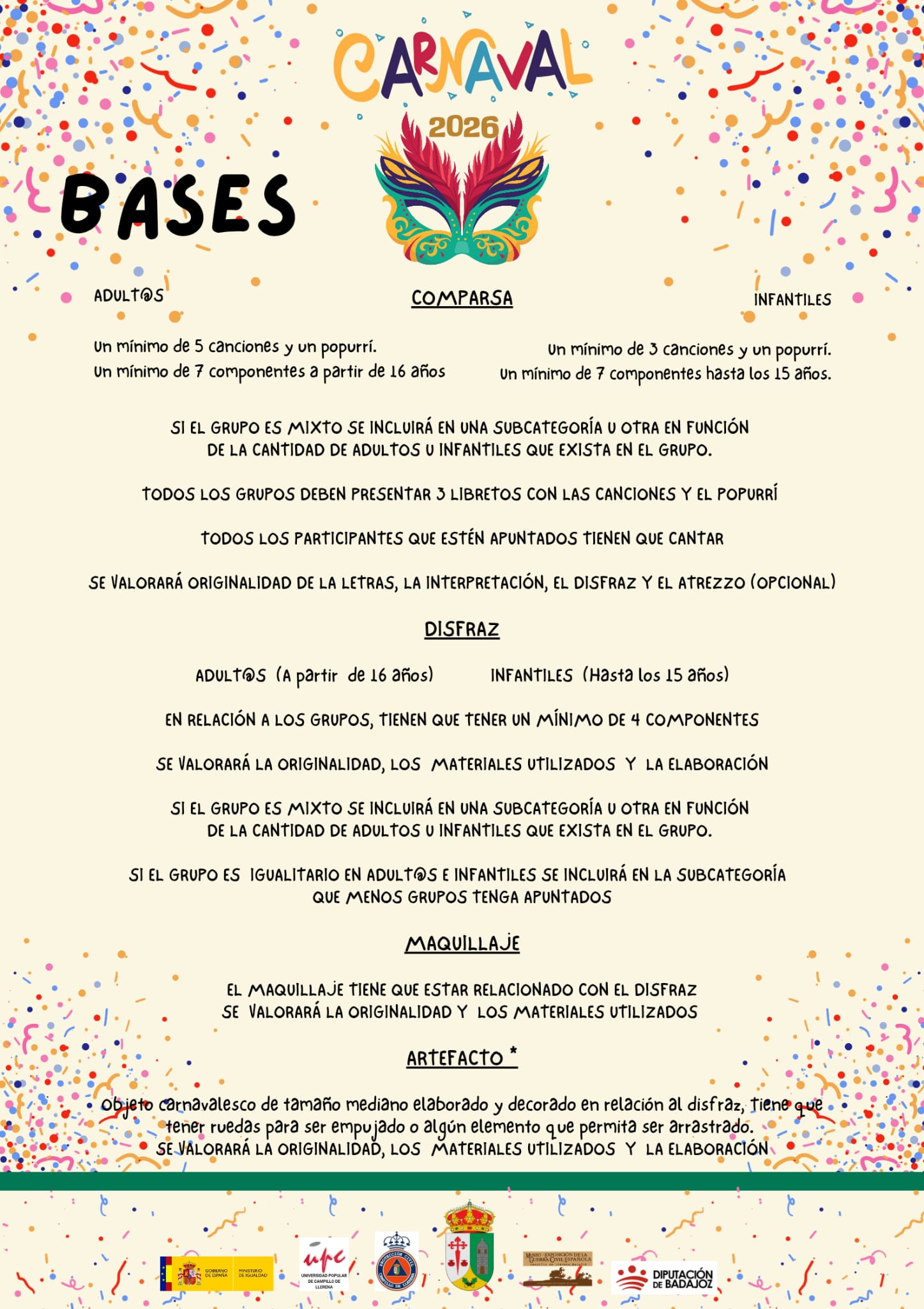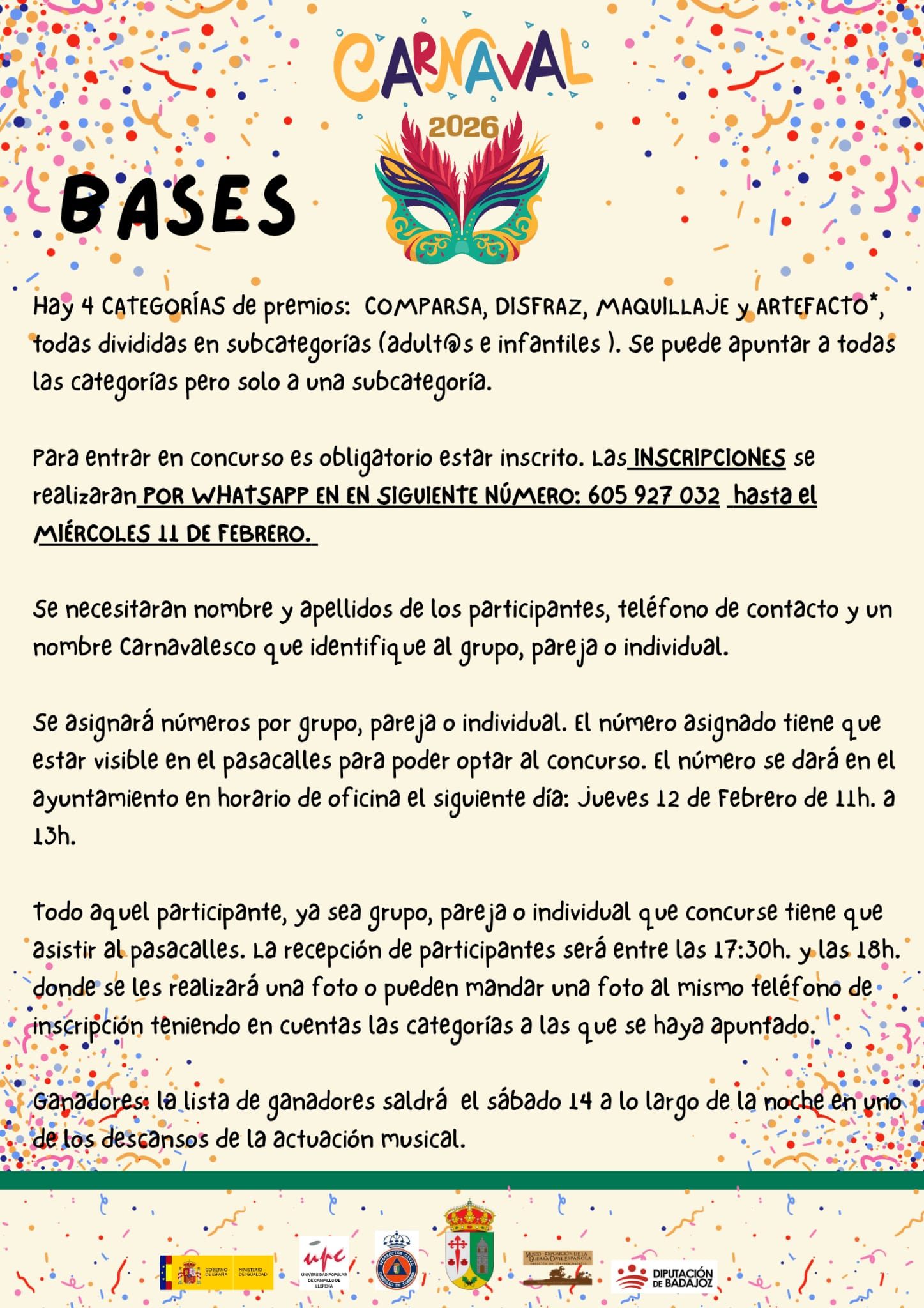 Se informa que las bases que rigen estos procesos selectivos se pueden consultarse en el tablón de anuncios de este Ayuntamiento desde el día de hoy. El plazo para inscribirse comienza hoy día 19/02/2026 y termina el 25/02/2026 a las 14:00 horas. Muchas gracias. -